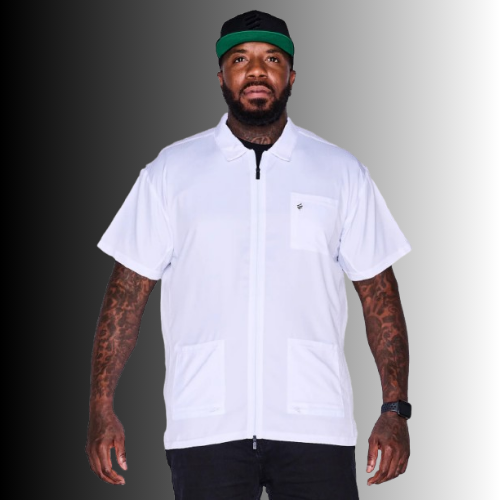 The Barber Jacket is ideal for busy days in the shop. Lightweight material, vented side panels and a 2-way zipper offer maximum comfort and mobility. Hair removal system in the front pockets allow for easy cleaning.