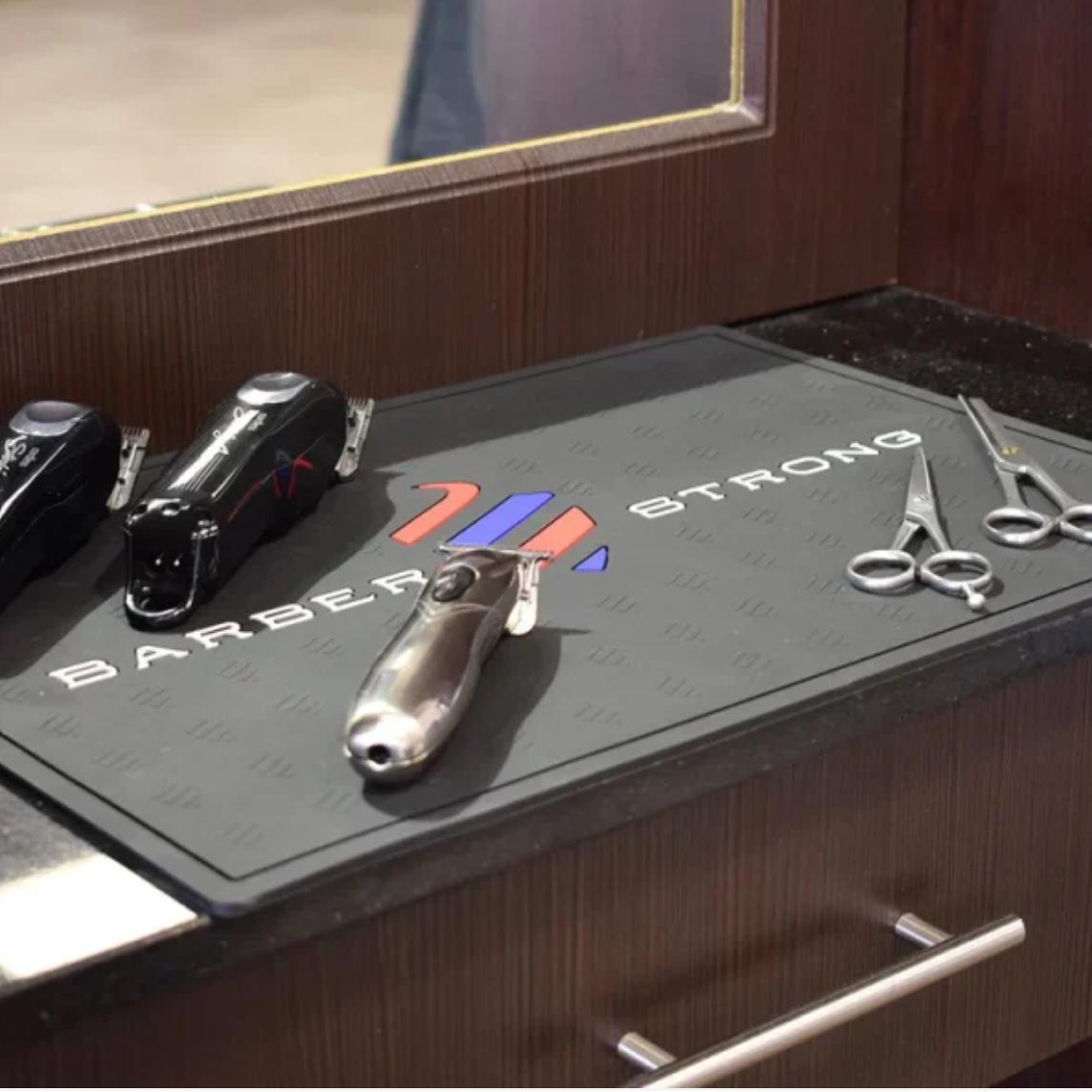 - Raised logos help secure scissors, tools, and appliances from sliding off the station