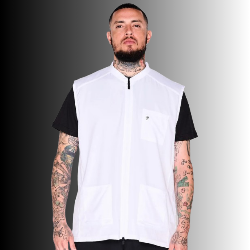 The Barber Vest features lightweight material, vented side panels and a 2-way zipper for max comfort. Sleeveless vest offers increased airflow where you need it the most, and hair removal system in the front pockets allows for easy cleaning.