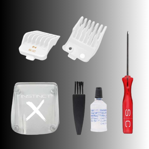 - Includes: 8 white dub magnetic guards, #0 (1/16”) #1 (1/8’’) #1.5 (3/16’’) #2 (1/4‘’) #3 (3/8‘’) #4 (1/2‘’) #5 (5/8’’) #6 (3/4‘’), charging stand/cord, 3 levers, 3 interchangeable lids, instruction manual, showcase window, cleaning/maintenance kit, convenient mini screwdriver for blade regulation, and custom body modifications.